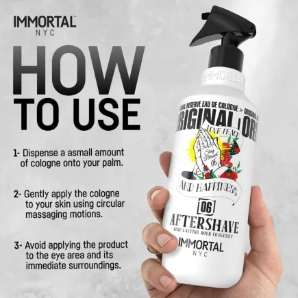 Boost your grooming routine with Immortal NYC Stay Blessed Aftershave 06. This long-lasting aftershave blends a bold, masculine fragrance with real skincare benefits. It helps calm irritation, protect against infection, reduce razor burn and redness, and leaves your skin feeling cool, smooth, and refreshed. The scent is clean, confident, and built to last without overpowering.