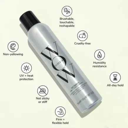Color WOW Texas Hold' Em Big Hold Hairspray 234ml delivers flexible, brushable hold with humidity resistance – no crunch, flakes or dullness.