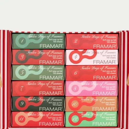 Get ready to sleigh the season. The Framar 2025 Advent Calendar – 12 Days of Framar – is back for round two, featuring twelve limited-edition festive foil boxes designed to make every holiday appointment sparkle. With 12 patterned pop-up foils (100 sheets each, 5x11"), this is the ultimate gift for stylists or anyone who loves a little holiday hair magic.