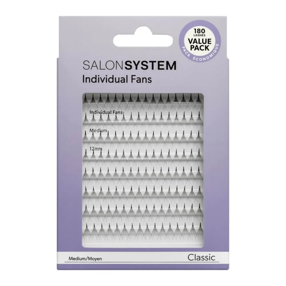 Salon System Individual Fans Value Pack – Medium features ultra-soft, lightweight lash fans designed to add natural-looking volume and definition. Made from premium fibres, these medium-length fans create a beautifully lifted lash extension effect while remaining comfortable and easy to apply.