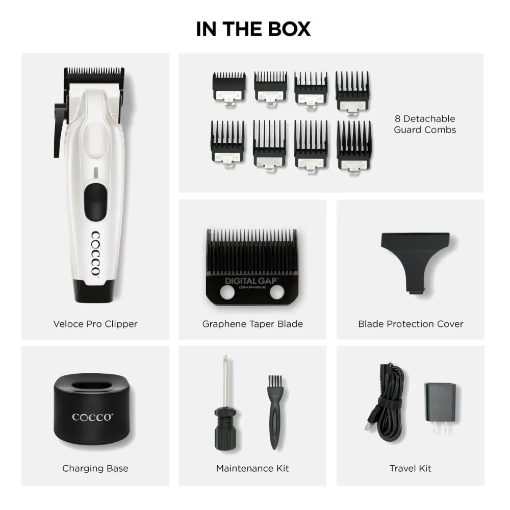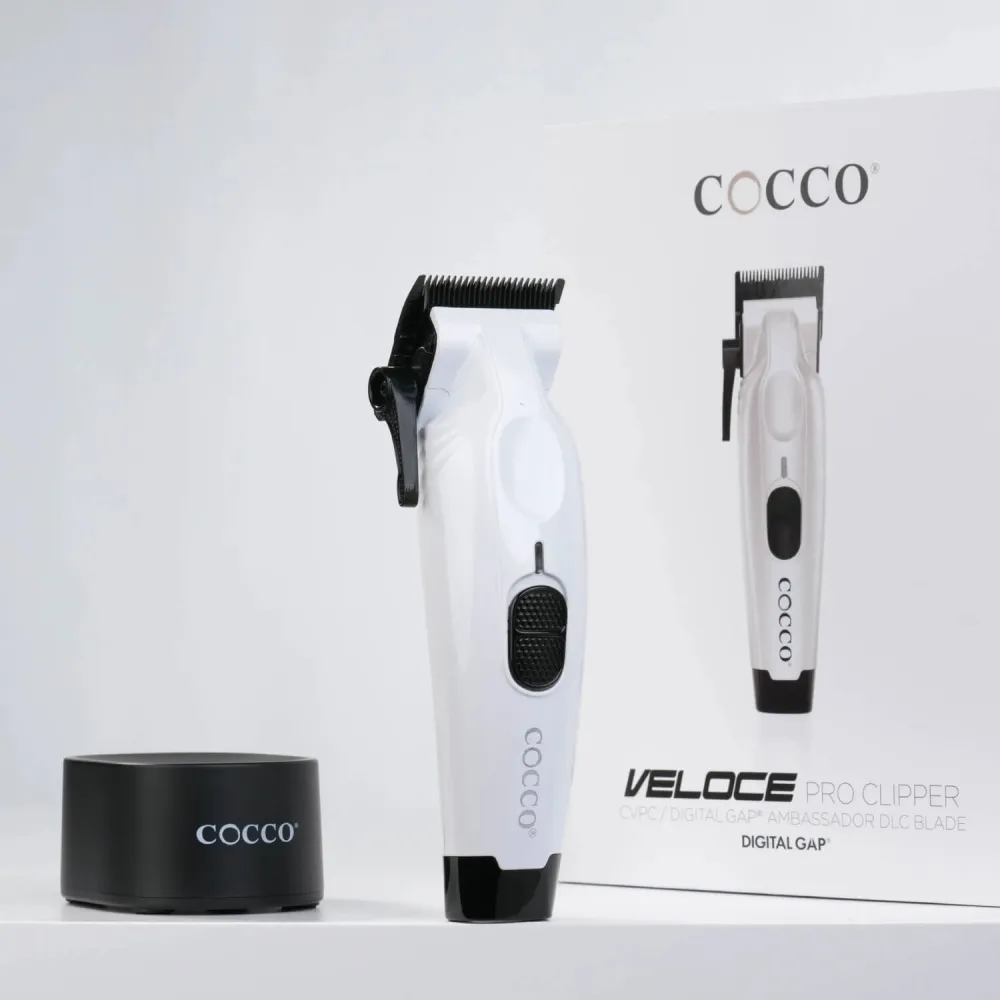 The Cocco Veloce Clipper Pearl White combines premium performance with a clean, standout finish. Built for professional barbers and stylists, it delivers the same trusted Hyper Veloce-level cutting power, precision blade technology, and smooth operation, making it ideal for fades, blending, and detailed work.