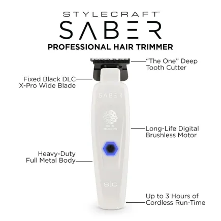 StyleCraft Saber Digital Brushless Motor Metal Trimmer White